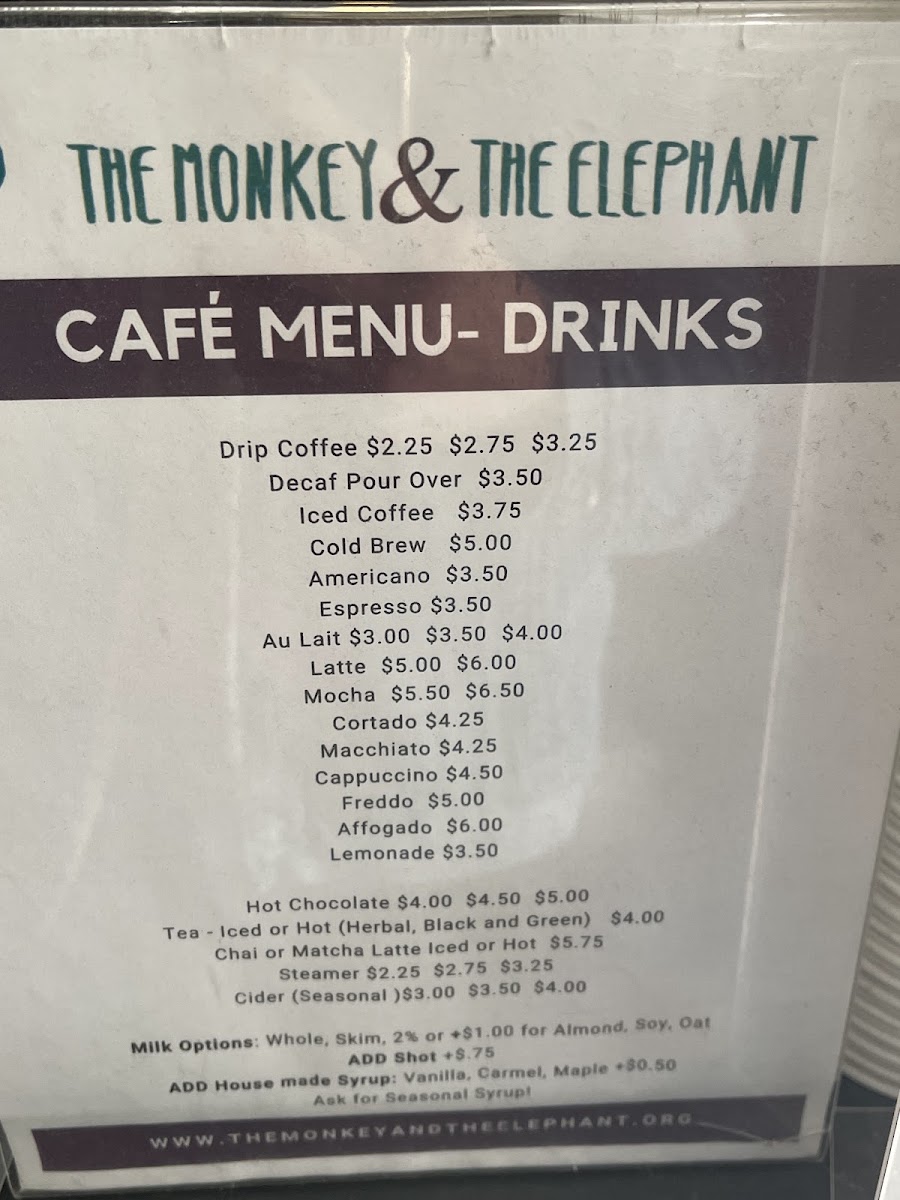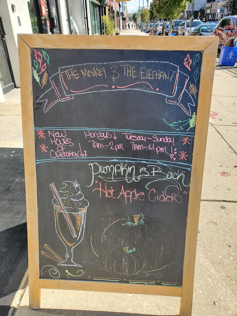 Welcome to The Monkey & The Elephant, a delightful café located at 2831 W Girard Ave, Philadelphia. This charming spot not only serves exceptional coffee but also fosters a warm, welcoming atmosphere. Highlights include their rich Mocha and smooth Cappuccino, perfect for those on the go or seeking a moment of calm. Customers rave about the Salted Caramel Iced Coffee, showcasing the café's commitment to high-quality brews.
